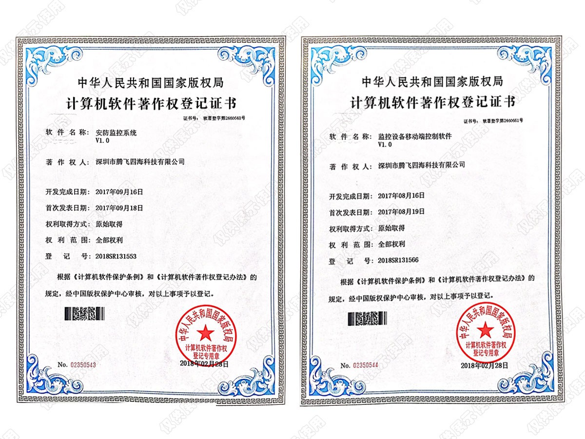深圳市騰飛四海科技有限公司專注現(xiàn)代化企業(yè)信息建設(shè),爭做國內(nèi)互聯(lián)網(wǎng)與安防領(lǐng)域的領(lǐng)導者。作為一家擁有自主知識產(chǎn)權(quán)的國家高新技術(shù)企業(yè),在成立之初便堅持從用戶的實際需求出發(fā),以質(zhì)量求發(fā)展,以信譽求生存。歷經(jīng)15年的風雨路程,如今,我們已榮獲電子與智能化專業(yè)承包資質(zhì)、廣東省公安廳安防資質(zhì)、安全生產(chǎn)許可證資質(zhì)、計算機信息系統(tǒng)集成等多項資質(zhì)。截止目前公司已通過:ISO9001質(zhì)量管理體系認證,ISO14001環(huán)境管理體系和ISO45001職業(yè)健康安全管理體系;榮獲AAA資信認證、實用新型專利證書、計算機軟件著作權(quán)登記證書。公司現(xiàn)為深圳市安防協(xié)會理事單位,深圳市文明誠信企業(yè),廣東省“守合同重信用”企業(yè)、深圳市政府采購中心供應(yīng)商等多個榮譽證書。